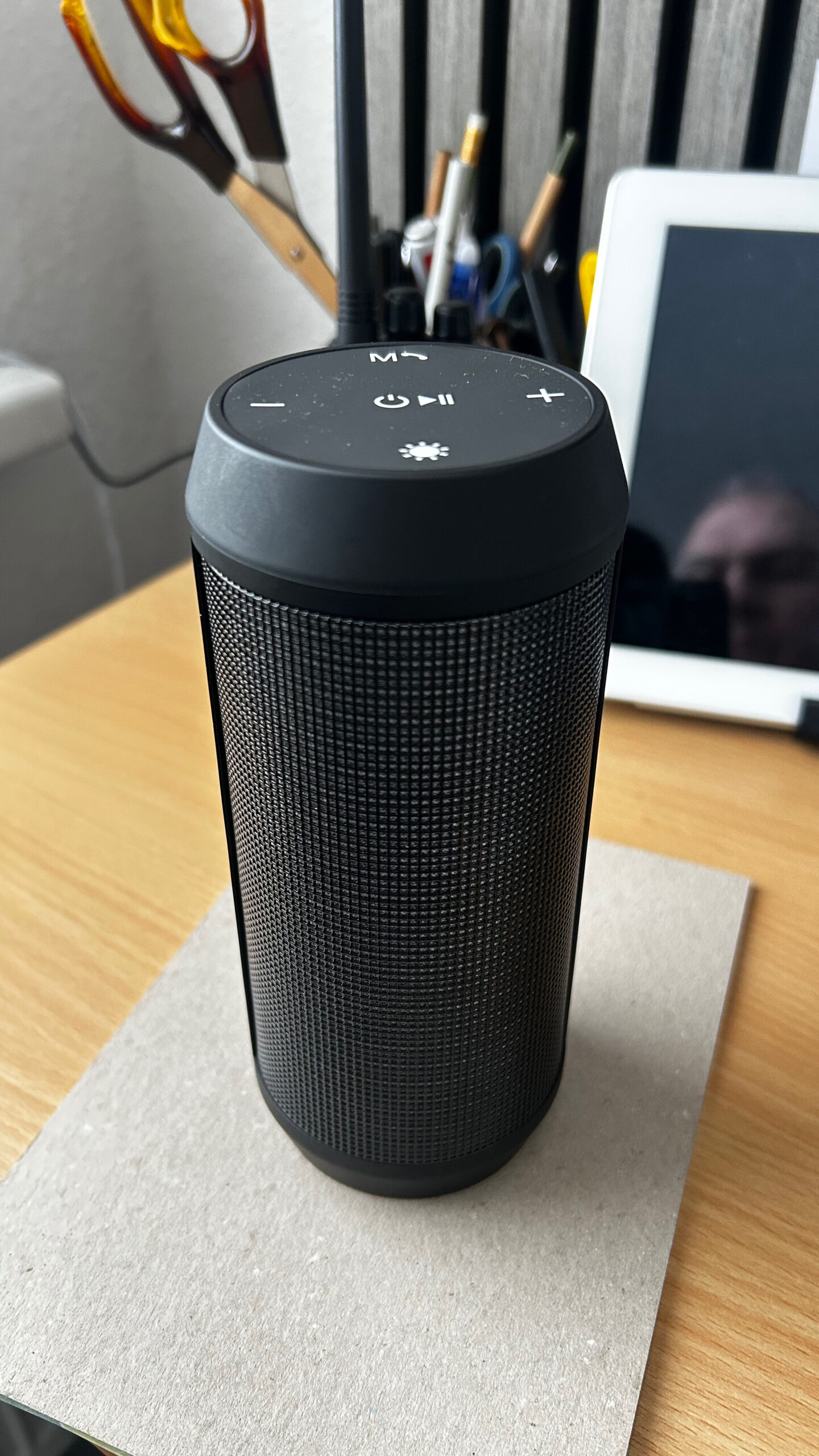 Nach längerem Überlegen sollt da auch noch eine Audioendstufe und ein Akku verbaut werden. Da ich noch genug PLA (grün) hatte wollte ich die Teile für das Gehäuse größtenteils aus Kunststoff herstellen. Das Grundgerüst habe ich dann erstmal aus Holz gebaut.